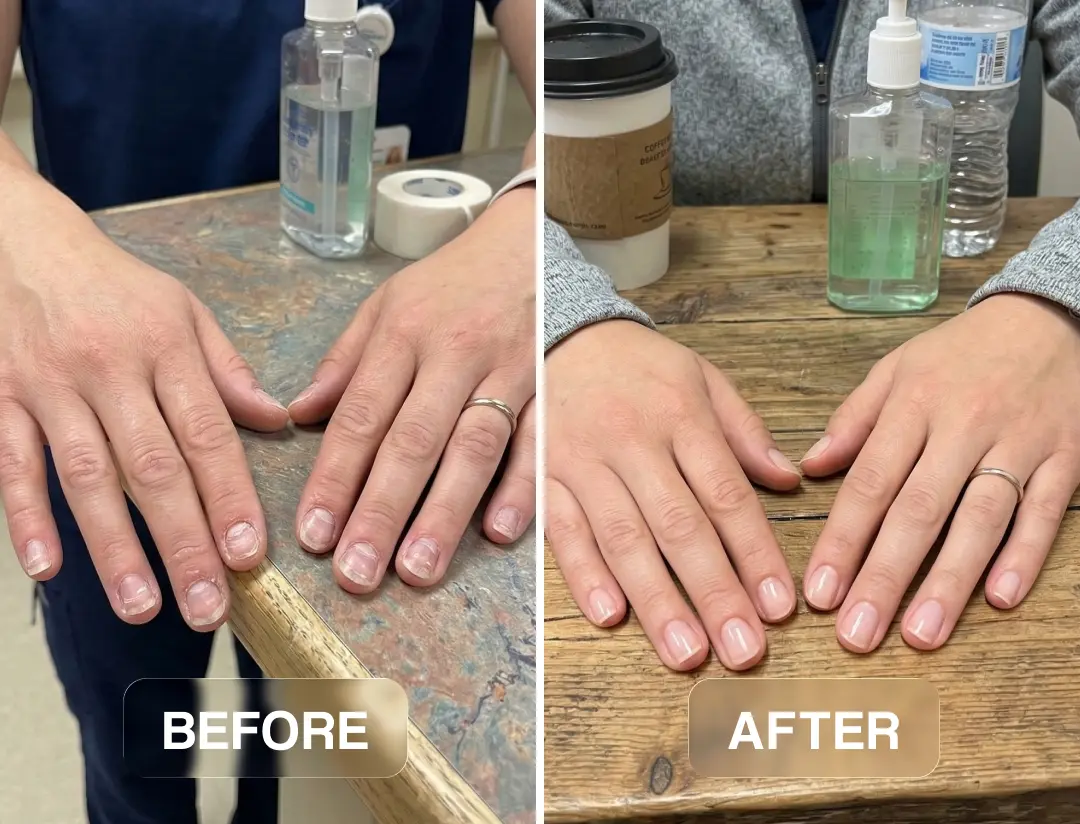 Patients stopped commenting on my hands. I work with elderly patients who notice everything. They used to ask about my damaged nails constantly. Made me self-conscious during treatments. Eight weeks later, they compliment how nice my hands look. Complete turnaround.